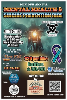 This ride is sponsored by Bikers With Hearts Charity a 501c3 non profit in Wisconsin & Illinois. This charity ride is dedicated to raising awareness for mental health and suicide prevention in our youth, specifically benefiting the mental health clinics at Children’s Wisconsin. Together, we can make a significant impact in the lives of children and families who need our support.