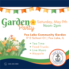 Celebrate the 10th Birthday of the Fox Lake Community Garden at the Garden Party on Saturday, May 9th, 2026, from Noon to 2 p.m. at 17 E School Ct in Fox Lake, IL. This vibrant event marks the grand opening of the Fox Lake Community Garden. This event includes teatime, food trucks, live music with cellist Drew Wiegman, and the maypole!
