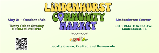 The Lindenhurst Community Market is a seasonal outdoor market held every other Sunday from 10 AM–2 PM at Lindenhurst Center (2040–2144 E Grand Ave, Lindenhurst, IL). The market features local farmers, artisans, makers, and food vendors offering fresh foods, handmade goods, unique gifts, and more. This family- and pet-friendly community event also features occasional meet-and-greets with adoptable cats from Gutter Cat Adoptions.